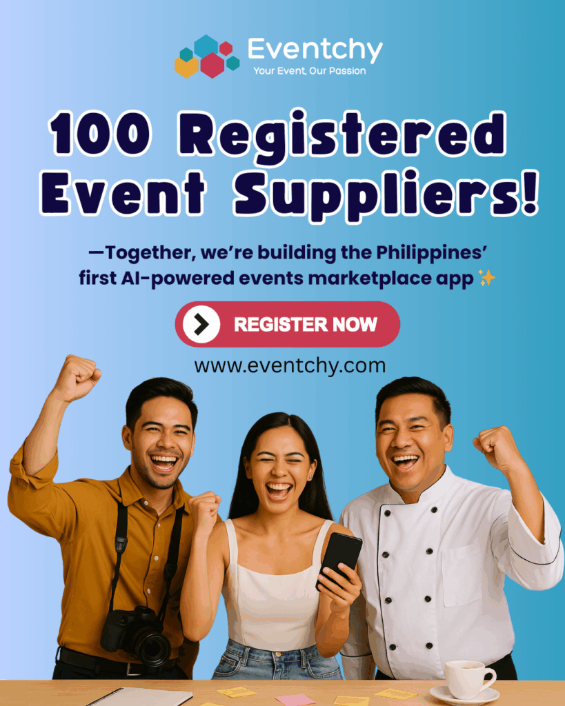Eventchy, the Philippines’ first AI-powered events marketplace app, is proud to announce that we’ve officially hit 100 registered suppliers—and we’ve done it in just three weeks since opening pre-registration! 💜…